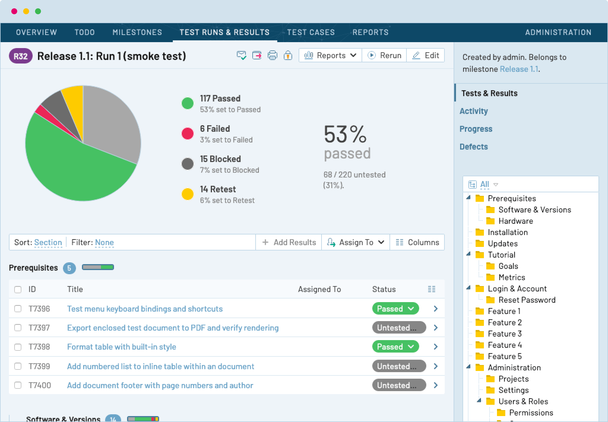 TestRail 可帮助跟踪实时进度,提高团队的可追溯性,从而实现更高性能的测试和更快地交付功能。