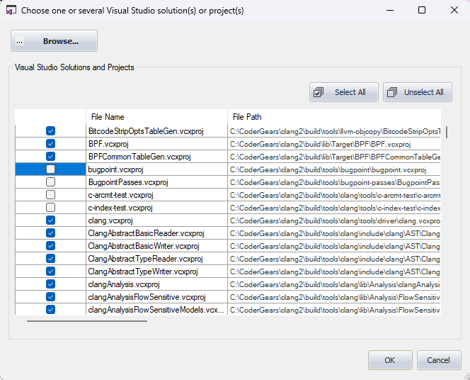 在CppDepend 2024.1中,Visual Studio解决方案和项目的解析功能得到了大幅增强,可有效处理复杂的vcproj/vcxproj配置。此外,现在还有一种直截了当的方法来选择性地过滤哪些解决方案项目会被解析。