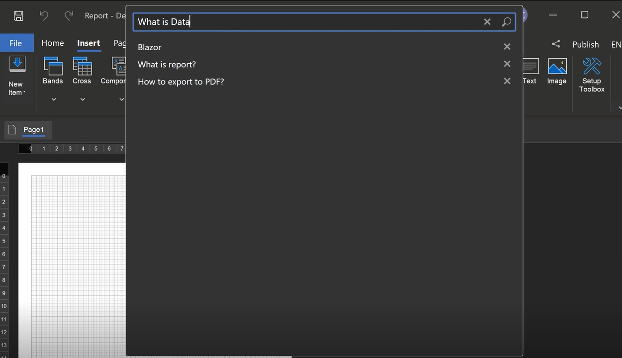 Stimulsoft BI Designer 中添加了搜索栏,使用户能够轻松访问 Stimulsoft 资源,包括文档、博客文章、示例、YouTube 频道和 GitHub。