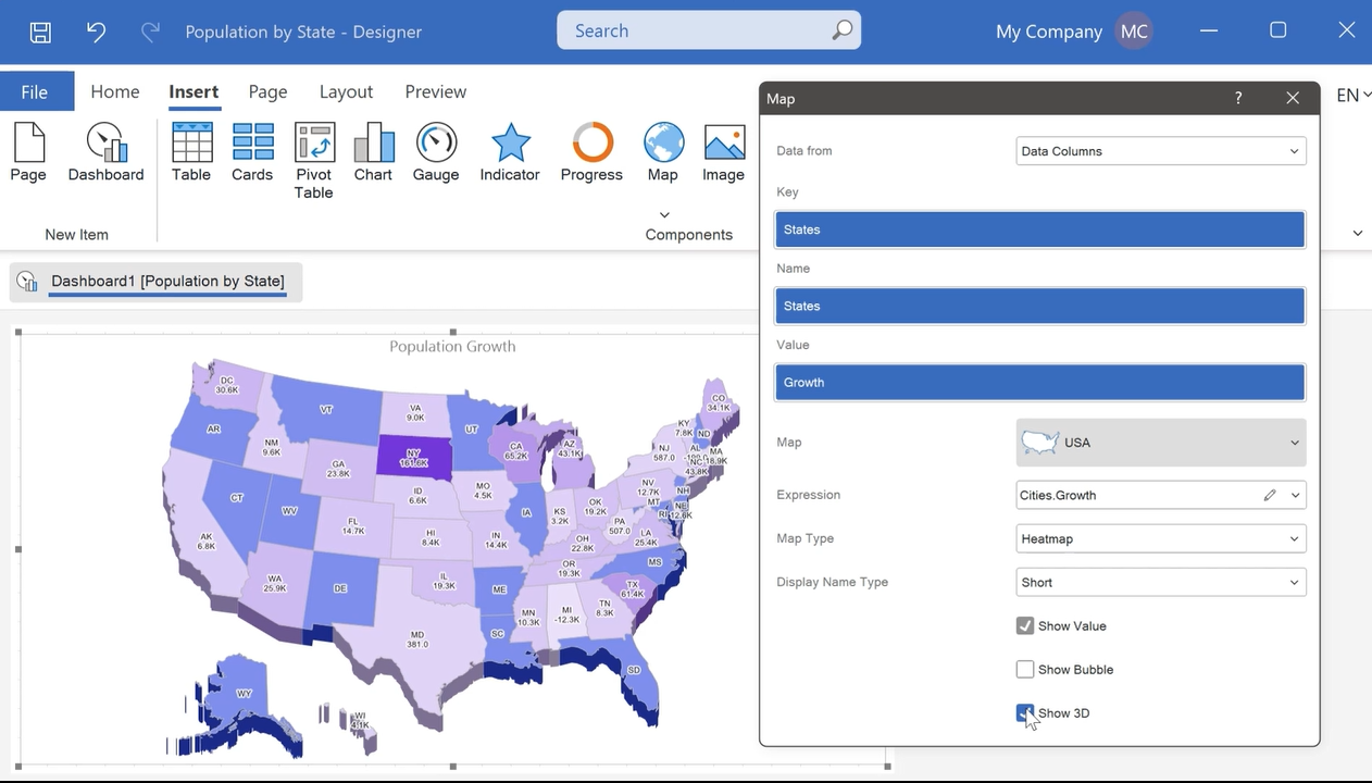 从2024.4.1版本开始,我们为报告中的Map组件和仪表板中的Region Map在某些地图中引入了对3D标注的支持。可以在组件编辑器中或通过使用“显示3D”属性轻松启用或禁用此3D模式。此外,还专门为非洲地区添加了50多张不同的地图。