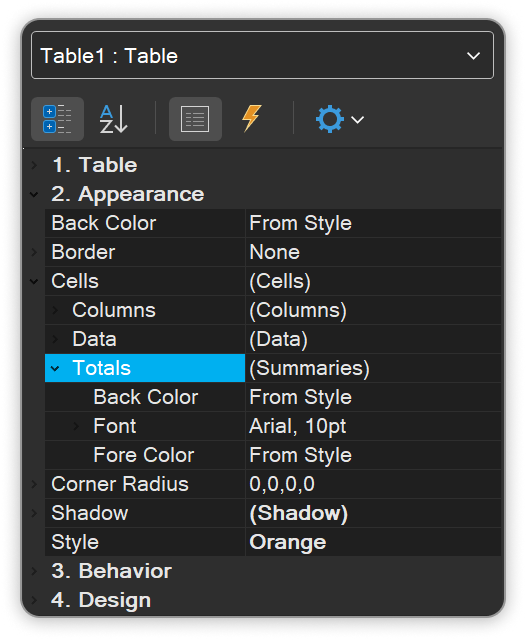 设计标题、单元格和总计的功能已添加到表和数据透视表仪表板元素中。以前,这些自定义仅限于元素样式设置。现在,通过使用“单元格”属性组,您可以更改标题、总计和数据单元格的字体、文本颜色和背景颜色,从而更好地控制仪表板的视觉外观。